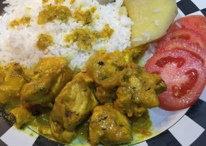 - In a saucepan, heat the oil on high until it smells. Add 1 oz. curry powder to the hot oil. Stir curry powder in oil until the color starts to change.